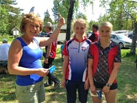 Brit Ingeborg Danielsen delte ut velfortjente premier til løperne. Her sammen med Margrete Vederhus og Kristin Mestad fra Torridal (D13-14)